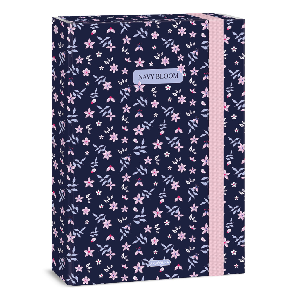 A/4 méretű füzetbox. Külseje matt fóliával és 3D dombor formalakkal. Kemény és tartós kartonból, 7 mm vastag gumipánttal. Belseje fehér színű. Füzetek, iratok tárolására vagy táska helyett is alkalmas. Méret:230x335x45 mm