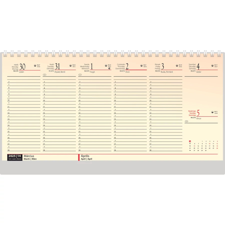 Ikerspirállal összefűzött asztali naptár, heti beosztással. 56 lapos