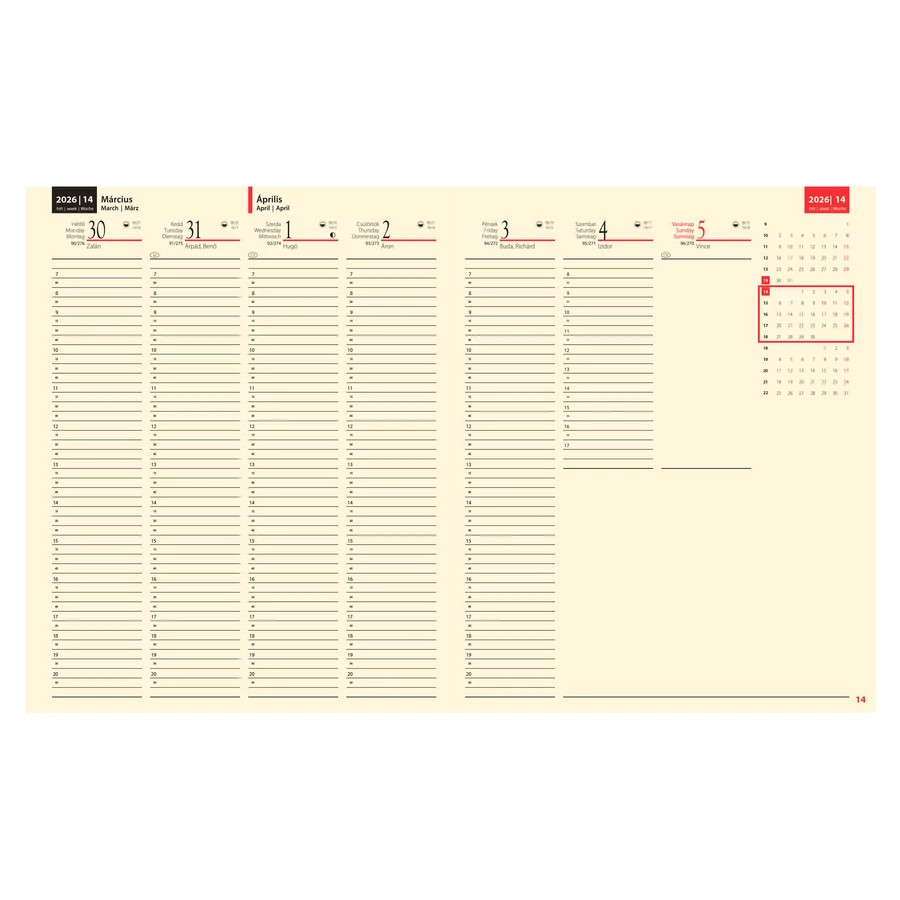 Határidőnapló, agenda A/4 heti, Bolero, 2026. évi, Drapp