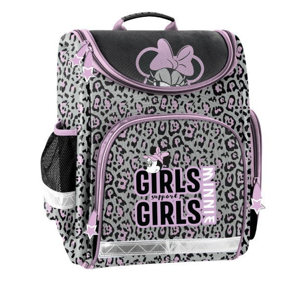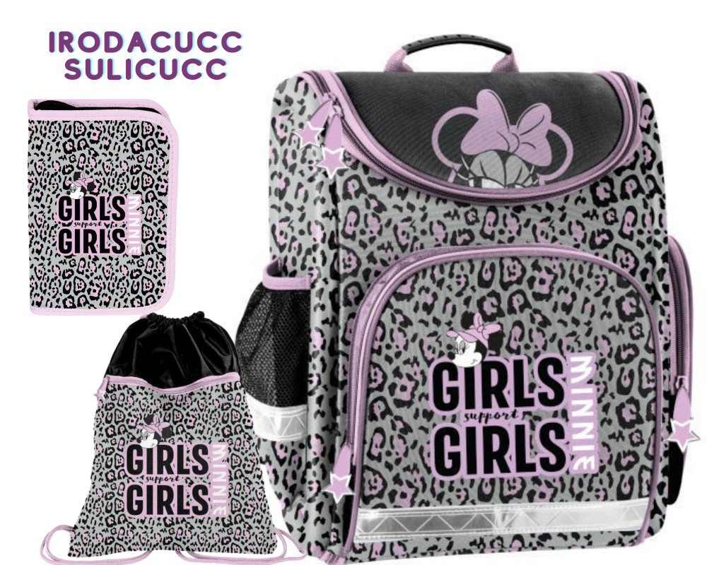 - Táska: Minnie Mouse ergonomikus iskolatáska - Girls support girls - Az ergonomikus megnevezés azt takarja, hogy a tervezés során figyelembe veszik a kisiskolás korú gyermekek testi adottságait és olyan hátizsákot készítenek, mely kíméli a gerincet, segíti a helyes testtartást. A könnyített (850 g) táska oldala merevített, hátsó része a gerinc két oldalán és a deréknál erősen párnázott, légáteresztő anyagú. Párnázott vállpántja állítható, hogy több évig is használható legyen. Ezt a célt szolgálja a kopásgátló alsó rész. Kézben is kényelmesen hordozható, ezt a fülén lévő puha műanyag fogantyú biztosítja. Belsejében füzetelválasztó különíti el a könyveket, füzeteket. A tolltartó és az ellenőrző az elől, illetve oldalt lévő kisebb cipzáras zsebekben tárolható. Egyik oldalán egy hálós zseb van kulacs tárolására. A gyermekek biztonságának érdekében a táska minden oldalán fényvisszaverő szalagok vannak. Ezzel a különleges Minnie Mouse iskolatáskával igazán trendi leszel a suliban!