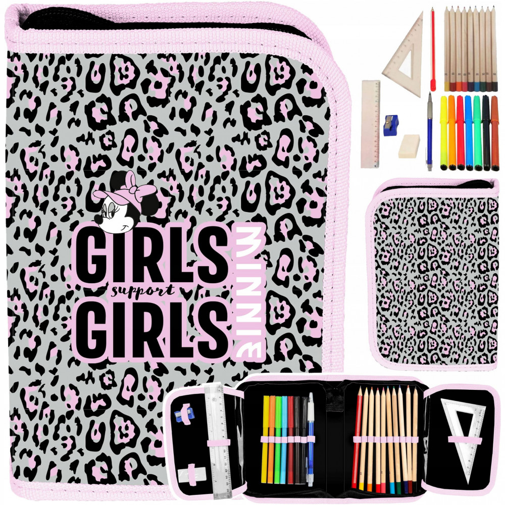 - Tolltartó: A Minnie Mouse felszerelt tolltartó - Girls support girls teljes felszereltséggel kapható. A két, oldalra kihajtható fül rejti az 1 db grafit ceruzát, az 1 db golyós tollat, a 9 db színes ceruzát, a 7 db filctollat, radírt, hegyezőt és 2 db vonalzót. Fedelét párducminta és Minnie egér díszíti.