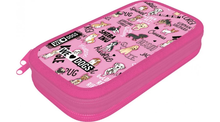 Kutyás emeletes textil tolltartó - We love dogs Pink